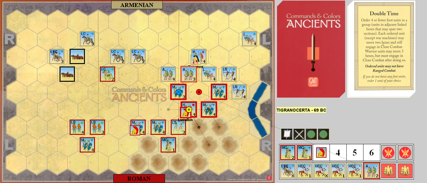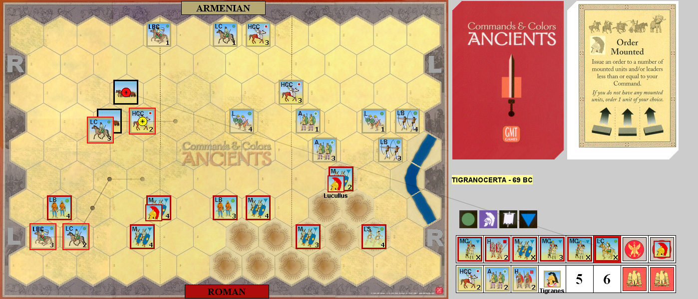The Roman center is largely MC, and the Armenian one is largely HCC, so it should be a good way to show off the latter, but the fact that most of the Roman center, and all of their right, is on hills keeps them from being particularly useful, outside of the Mounted Charge card.