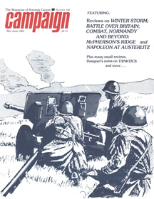 Issue #109 of Campaign magazine (May-June 1982) featured reviews of Winter Storm, Battle Over Britain, Combat, McPherson’s Ridge, and Napoleon at Austerlitz.